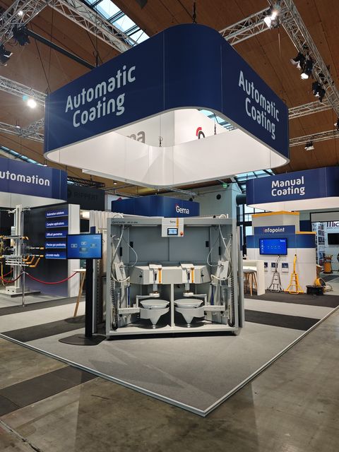 Visitors also showed great interest in the OptiCenter® All-in-One OC11 powder management center with DualSpeeder and OptiSpray pumps. Another highlight wasthe dynamic ZA17 vertical module in combination with the ZS05 stationary axis for precise movement and positioning of multiple UA05 and UA05-x gun axes. As always, our live manual coating demonstrations with OptiFlex Por manual units attracted many visitors and highlighted the reliability and easy handling of Gema’s manual equipment.